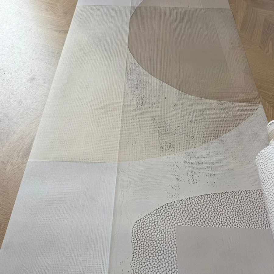 De ingetogen kleuren – een mix van zachte zandkleuren en greiges – maken dit behang perfect voor iedere ruimte. Of je nu een sfeervolle woonkamer, een serene slaapkamer of een inspirerende werkplek wilt creëren, GeometricLounge voegt een kalme, uitnodigende sfeer toe zonder te overheersen.