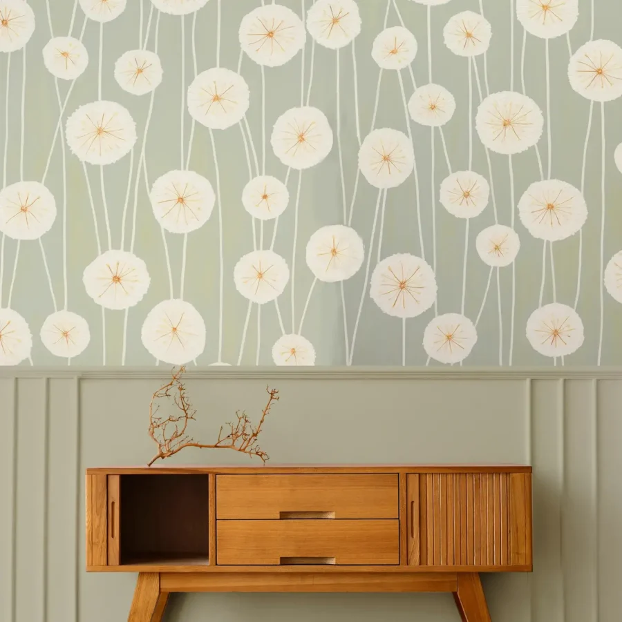 Decoratief behang met patroon met Paardenbloemen, de zgn Dandelions. Het patroon geeft een fijn en vrolijk gevoel, maar is toch subtiel qua kleuren. Je kan nog alle kanten op met de stijl van je ruimte. De subtiele tinten geven rust, tegelijkertijd is het vrolijk behang dat niet zal misstaan in de kinderkamer! Of plak je het behang in je eigen slaap- of werkkamer. Dit behang plakken in de badkamer of keuken? Kies in dat geval voor ons naadloze behang met waterafstotende kwaliteiten!