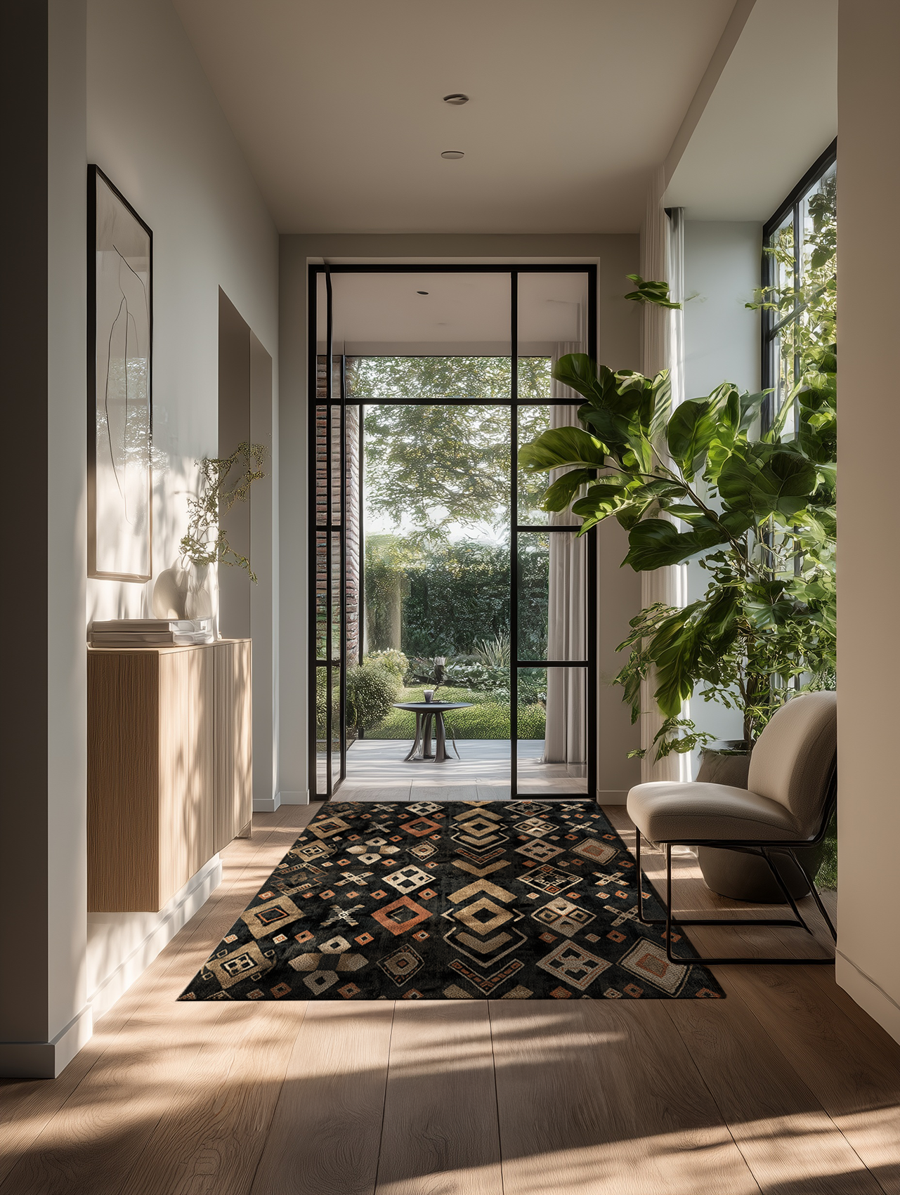 Breng een frisheid en een hip design naar je hal met de droogloopmat Nomad black. De nomadische stijl met natuurlijke kleuren geeft je entree een sfeervolle Boho uitstraling, terwijl de sterke vezels vuil en vocht efficiënt opnemen. Zo blijft je vloer schoon en droog, met een design dat subtiel maar toch opvallend is.